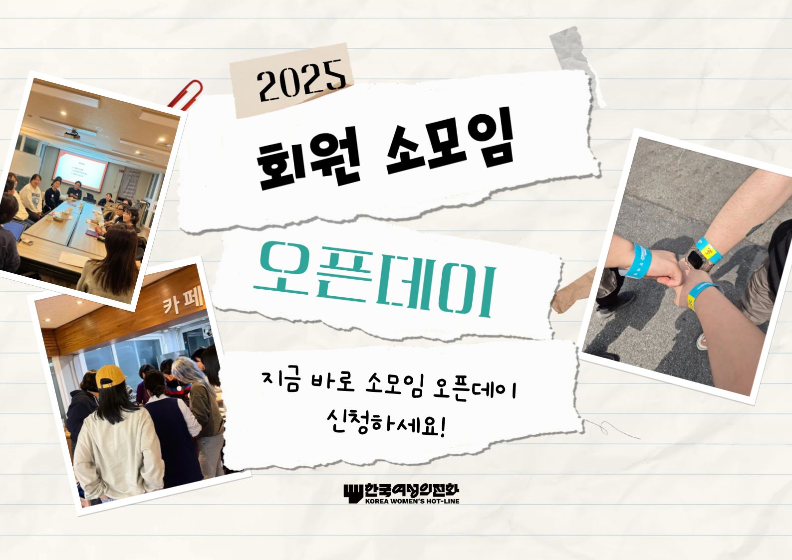 11월을 맞아 한국여성의전화 회원 소모임원을 모집합니다!🤗 이번에는 특별히 미리 소모임을 체험해볼 수 있는 소모임 오픈데이도 준비했어요!