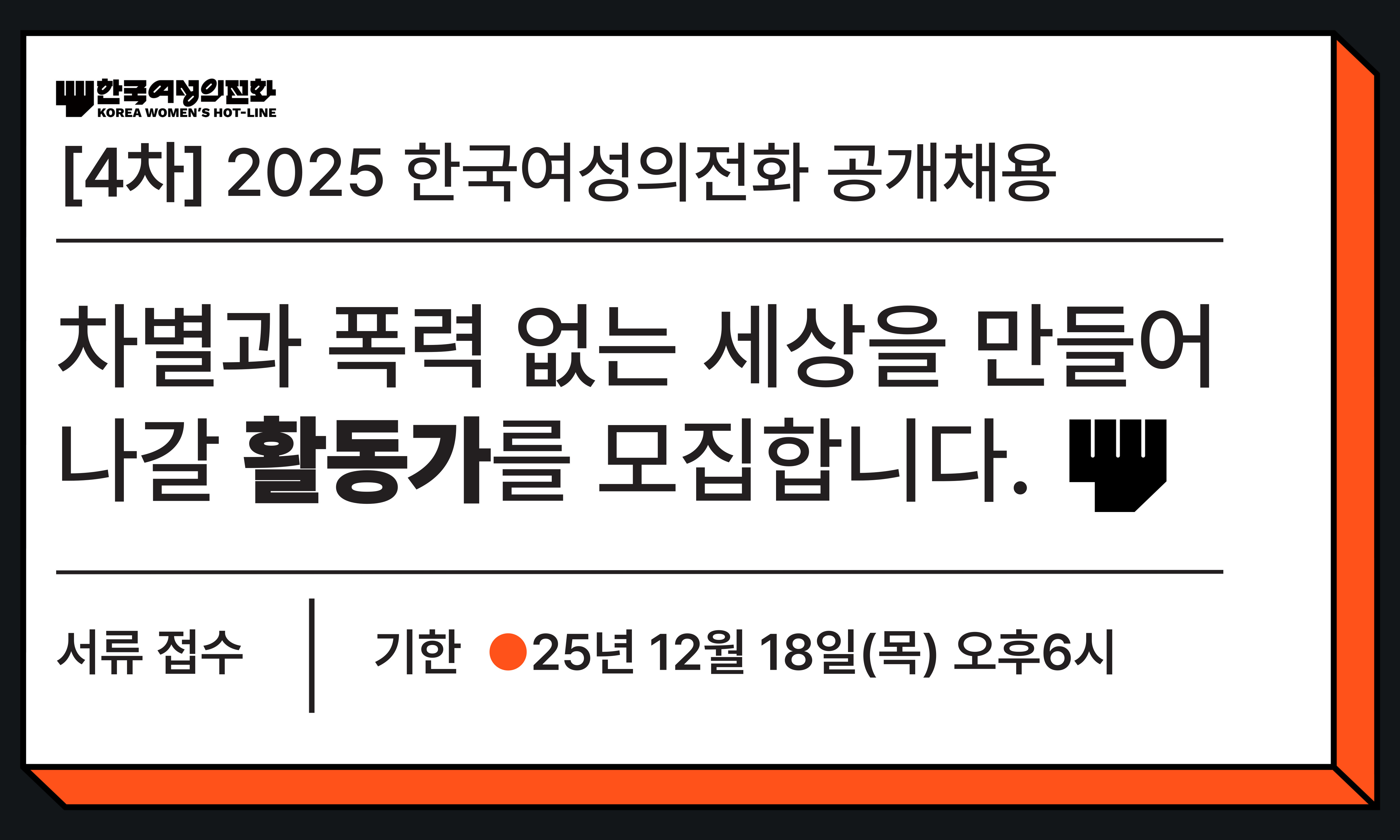 💡 문의 한국여성의전화 기획조직국(02-3156-5475, member@hotline.or.kr)