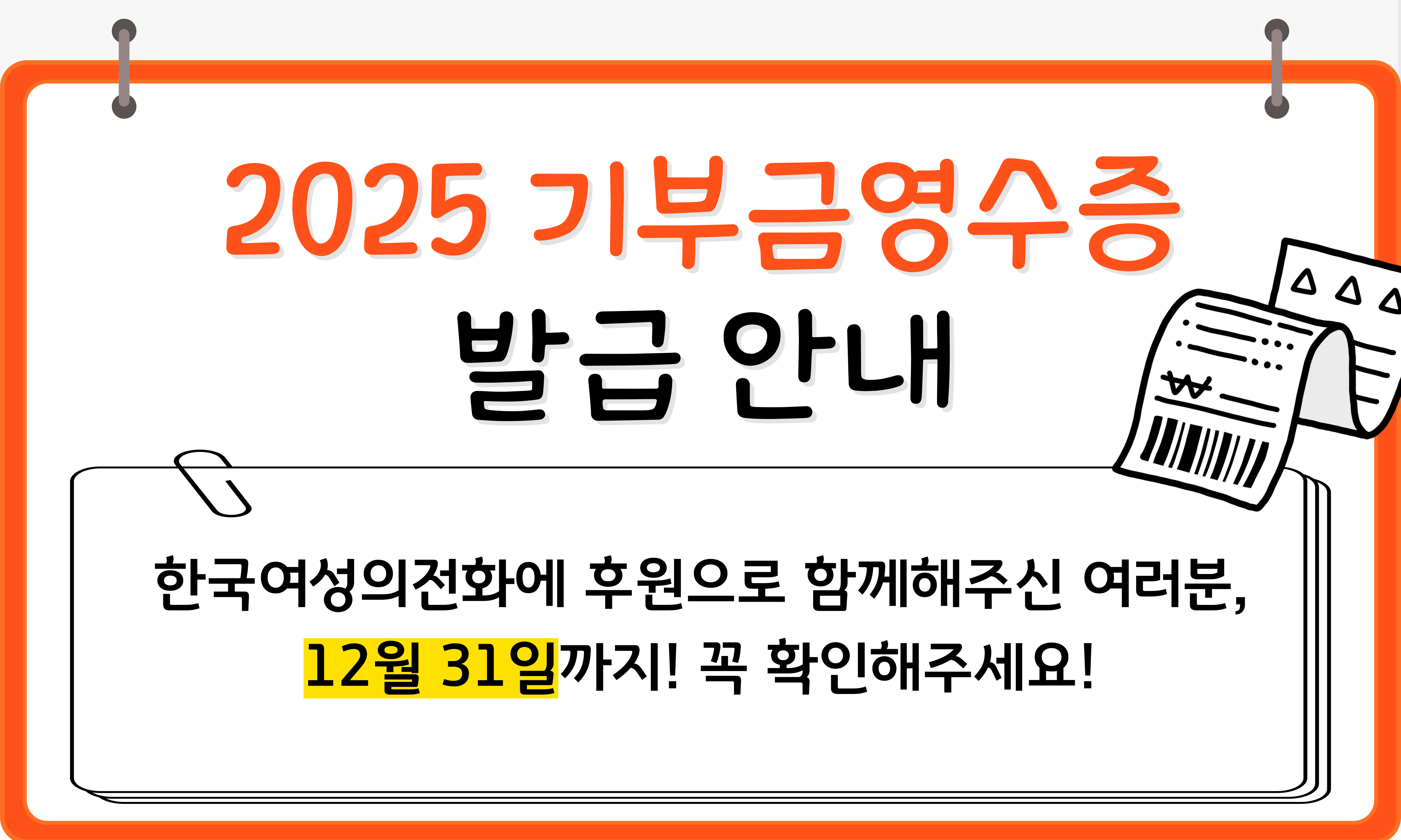 올해 한국여성의전화에 후원하셨다면, 12월 31일까지 기부금영수증 신청하시고, 연말정산 세액 공제 혜택 받아보세요!